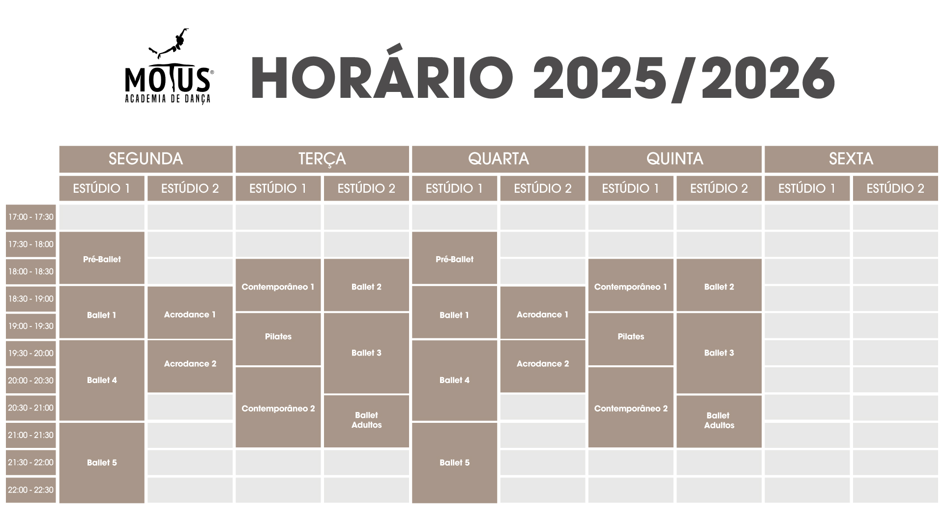 Na MOTUS, acreditamos que cada passo dado no estúdio é uma oportunidade de crescimento e aprendizagem. A nossa missão é proporcionar uma formação completa e enriquecedora aos nossos alunos, independentemente do seu nível técnico ou idade e, para isso, contamos com uma equipa de profissionais certificados, dedicados e apaixonados pelo ensino.